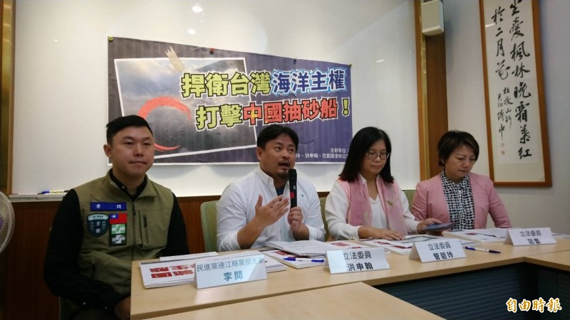 〔自由時報記者陳鈺馥/台北報導〕中國抽砂船近來頻頻在馬祖等海域越界盜砂,且有變本加厲現象。民進黨立委洪申翰、管碧玲今日召開「維護台灣領海主權,打擊中國抽砂船」記者會,呼籲政府應訂定海洋環境保育線,擴大執法範圍,海巡署也應制定抽砂船查緝暨驅離專案計畫,常態性提升執法能量。